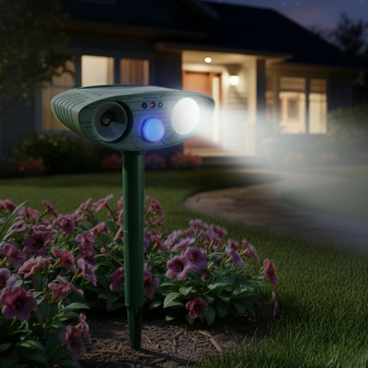 1️⃣ Detects Movement – The built-in motion sensor activates when bats approach the protected zone.